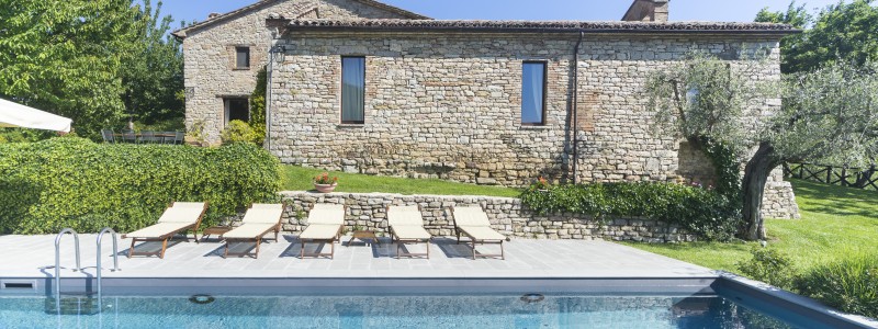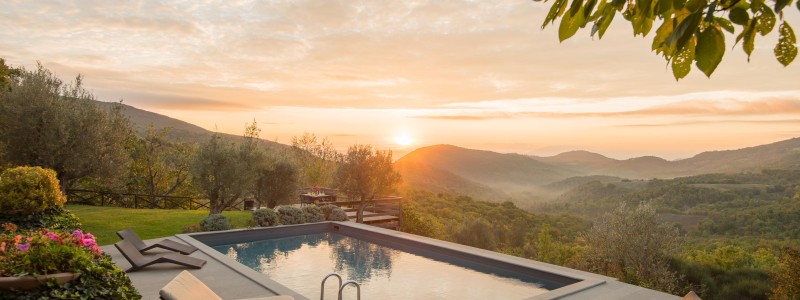 The Villa is situated is set among the rolling Umbrian hills. It dominates the spectacular valley of Monte Tezio and it is located 20 km from Perugia and 15 km from Lake Trasimeno. There are plenty of opportunities for viewing local wildlife, as the estate is also a nature reserve and farm. The Villa is set on top of a hill, affording beautiful views across the forests and it is very close to an 18 holes Golf course. With immaculate furnishings in warm, rich colours with comfortable furniture, and en suite bedrooms, the villa has all the comforts of a modern home. The surrounding grounds are fenced for privacy and safety, immaculately kept, containing a lovely outdoor breakfast table, patio dining area and swimming pool, framing the magnificent views of the valley.